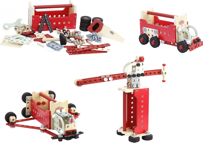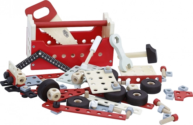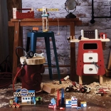 Szukasz zabawki, która będzie rozwijać umiejętności motoryczne i kreatywne myślenie Twojego dziecka? Dwustronna walizka z narzędziami Vilac to właściwy wybór! Ten zestaw zawiera aż 96 elementów, które umożliwiają składanie modularnych konstrukcji, takich jak ciężarówka, żuraw czy nawet robot. Projekt Atelieru Vilac gwarantuje wysoką jakość wykonania i atrakcyjny, vintage’owy wygląd. Dzieci będą mogły wcielić się w rolę małego majsterkowicza i rozświetlić swoje królestwo zabawek.