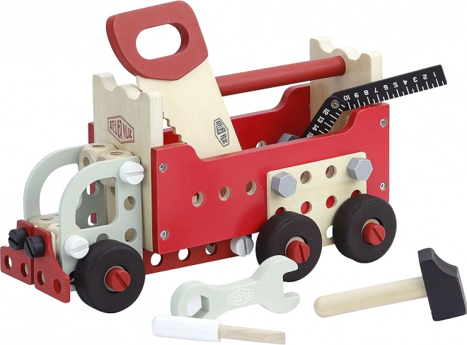 Zestaw wykonany jest głównie z wysokiej jakości drewna i zawiera trwałe elementy, które zapewniają długą żywotność zabawki.
