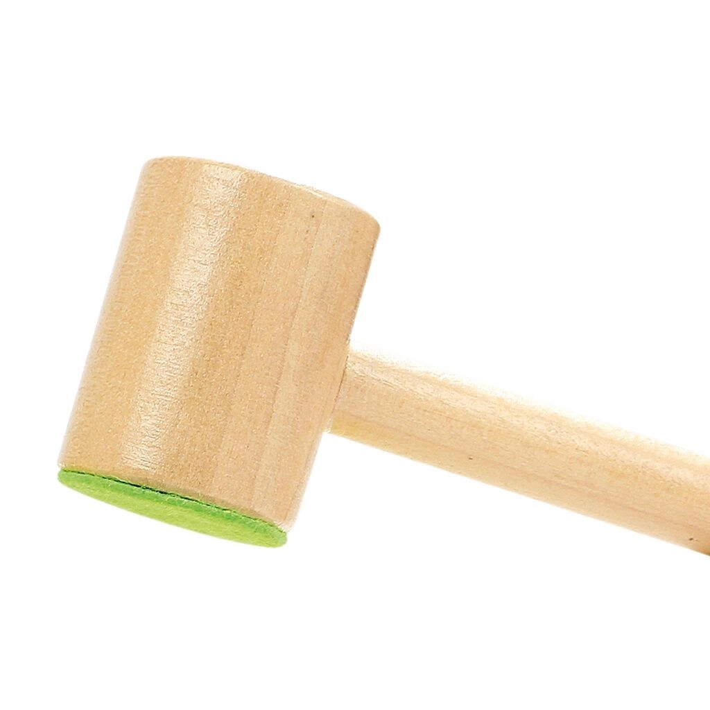 Drewniany młotek z filcowym pokryciem tłumi hałas i chroni powierzchnię zabawki, dzięki czemu zabawa jest przyjemna także dla rodziców.