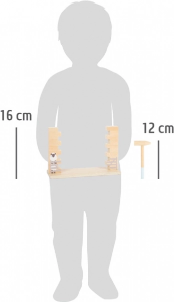 Przedstawiamy świetną drewnianą grę, która zainteresuje nie tylko dzieci, ale i dorosłych. Ta zabawka z motywem owieczki i farmy skrywa ilustrowane i kolorowe elementy, które dzieci mogą wyjmować za pomocą młoteczków. Wysokiej jakości wykonanie z wyraźnie widocznym drewnem gwarantuje długotrwałą wytrzymałość i bezpieczeństwo.