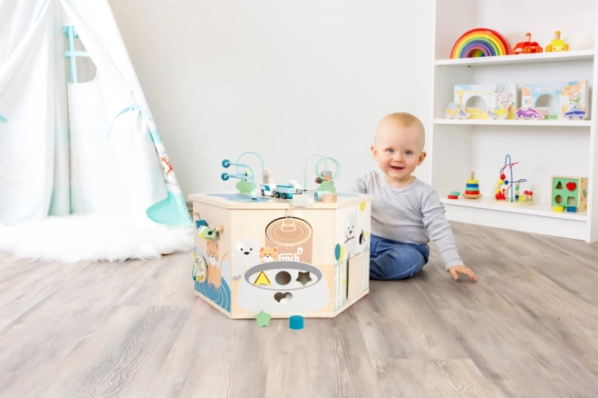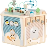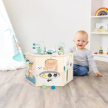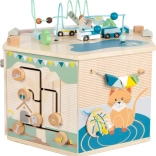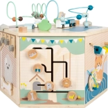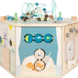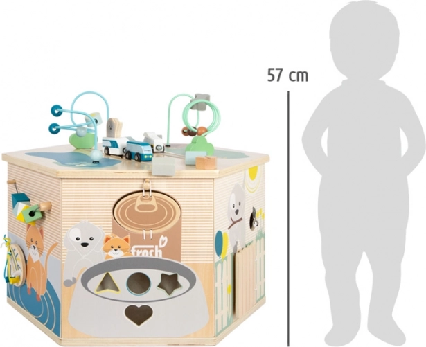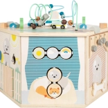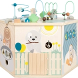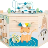Interaktywna kostka motoryczna SMALL FOOT Pets XXL to przemyślane edukacyjne centrum dla najmłodszych. Osiem paneli rozwojowych wspiera małą motorykę, dotyk i percepcję słuchową, a dzięki dopracowanym ilustracjom przybliża dzieciom codzienne życie zwierząt. Dzieci odkryją tu koralikowy labirynt, sorter kształtów, obrotowe płytki, przewlekankę / sortowanie kolorów, układankę i inne elementy interaktywne, które wspierają koncentrację i myślenie logiczne.