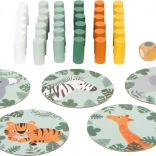 Wieża wykonana jest z wysokiej jakości drewna z trwałym nadrukiem w modnych kolorach i uroczymi motywami zwierząt. Świetnie wpasuje się do pokoju dziecięcego i sali zabaw, a także łatwo łączy się z innymi grami z serii SAFARI. Proste zasady gwarantują szybki start i frajdę dla małych i dużych.