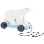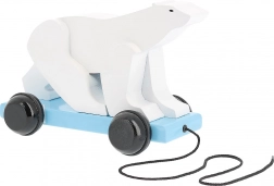 Miś wykonany jest z wysokiej jakości drewna, ma stabilne podwozie o płynnym biegu oraz wygodny sznurek do ciągnięcia dla małych rączek. Podczas zabawy dzieci naturalnie trenują równowagę, koordynację i pewność w chodzeniu.