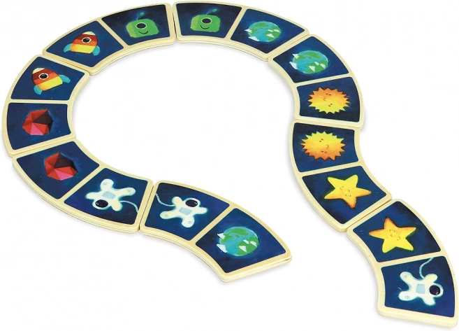 Unikatowe dziecięce domino z kosmicznymi motywami zapewnia kreatywną zabawę dla małych i dużych. Zestaw zawiera 28 drewnianych elementów, które są odpowiednie także dla najmłodszych dzieci dzięki łukowatemu kształtowi.