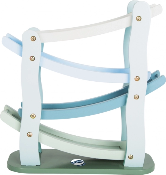 Drewniana kaskadowa zjeżdżalnia SMALL FOOT Blue to świetny towarzysz zabawy dla dzieci od 18 miesięcy. Autka startują z najwyższego poziomu i mkną po skośnych rampach w dół, efektownie się przekręcając – wszystko to wspiera koncentrację, cierpliwość oraz radość z odkrywania przyczyn i skutków.