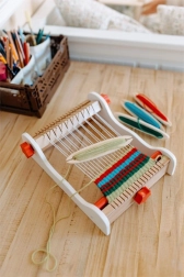Krosno jest kompaktowe i stabilne, odpowiednie na stół i do pokoju dziecięcego. Prosta obsługa wspiera samodzielność i pierwsze zapoznanie z techniką tkania. Świetne do rozwijania kreatywności i wyobraźni u dzieci od 3 lat.
