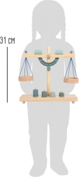 Obsługując „klientów”, dzieci uczą się komunikacji, współpracy i uczciwej wymiany. Dzięki wysokiej jakości drewnu o naturalnym wyglądzie oraz przyjemnym szaroniebieskim tonom waga jest nie tylko trwała, ale też estetyczna i bezpieczna dla dziecięcych rąk.