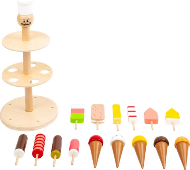 To z czułością zaprojektowane stoisko z lodami z litego drewna spełni wszystkie lodowe marzenia. Dzieci mogą wybierać między lodami na patyku a gałkowymi w waflowym rożku i stworzyć własną witrynę pełną kolorowych smakołyków. Dzięki stabilnej konstrukcji idealnie nadaje się do dziecięcego sklepiku, kuchni lub kawiarenki.