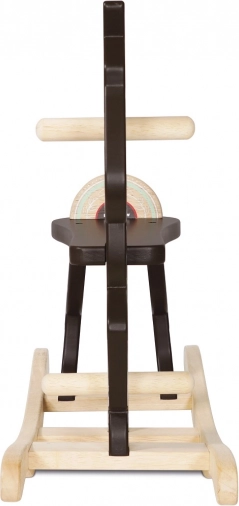 - Bezpieczeństwo na pierwszym miejscu: solidna drewniana podstawa, stabilne bujanie, gładki uchwyt i podnóżki.