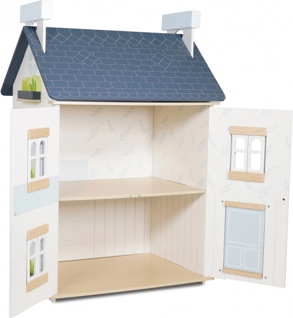 Domek dla lalek Sky od Le Toy Van wykonany jest z wysokiej jakości drewna z naciskiem na etyczne praktyki produkcji. Pomalowany delikatną bielą i pastelowym błękitem stanowi dekoracyjny element każdego dziecięcego pokoju. Otwierane okna i dwupiętrowa konstrukcja oferują niezliczone możliwości wyobrażeniowej zabawy oraz rozwój koordynacji i małej motoryki.
