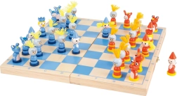 Odkryj szachy, które naprawdę bawią dzieci! Solidna drewniana plansza z niebiesko-naturalnymi polami i figury o zabawnym wyglądzie wyróżniają się trwałością i czytelnością. Dzięki składanej konstrukcji służy także jako kaseta do bezpiecznego przechowywania elementów – wszystko masz pod ręką i gotowe do szybkiej partii.