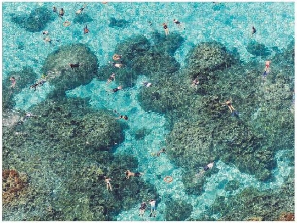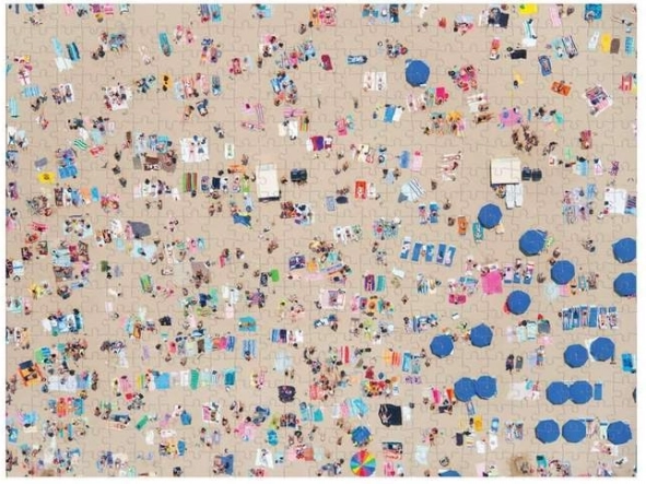 Stylowe, dwustronne puzzle inspirowane kultowymi fotografiami lotniczymi Gray Malin oferują atrakcyjne wyzwanie oraz dekoracyjny efekt. Jedna strona ukazuje tętniącą życiem plażę z perspektywy ptaka, druga spokojną taflę oceanu ze skałkami i pływakami. Dzięki różnym wykończeniom (połysk/mat) łatwo rozpoznasz, którą stronę właśnie układasz.