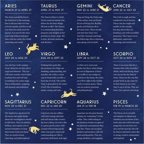 Każdy znak zodiaku jest unikalnie przedstawiony i oddaje esencję danego znaku w zabawnym kocim stylu.