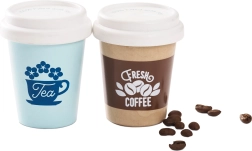 - 2 kubki (kawa i herbata) z wieczkami