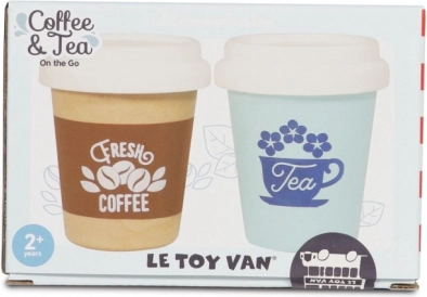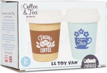 Stylowy dziecięcy zestaw dwóch kubków na kawę i herbatę na wynos od LE TOY VAN do realistycznej zabawy. Wykonany z drewna FSC, bez plastiku i malowany nietoksycznymi farbami na bazie wody. Świetny do dziecięcej kuchni oraz do zabawy w sklep, wspiera kreatywność i rozwój umiejętności społecznych.