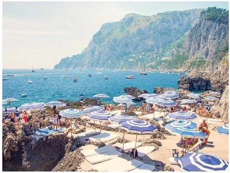Delektuj się kultowym widokiem z góry: turkusowe morze, kolorowe parasole plażowe i malownicze wybrzeże, które cieszą oczy i duszę.