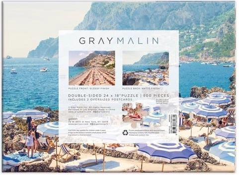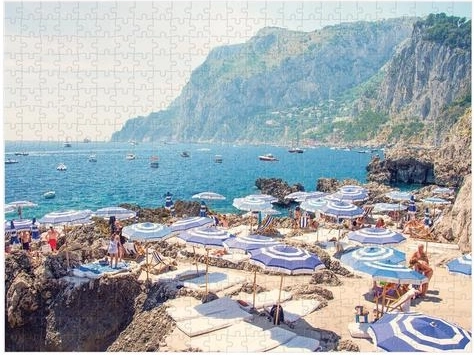 Odkryj urok włoskiego wybrzeża z dwustronnymi puzzlami, które oferują dwa zachwycające ujęcia lotnicze pełne słońca, turkusowego morza i kultowych parasoli plażowych. Jedna strona jest błyszcząca, druga matowa, więc z łatwością rozpoznasz, którą układać. Dzięki precyzyjnemu wykrojowi układanie jest płynne i satysfakcjonujące.