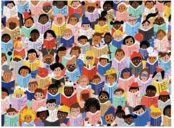 Barwne przedstawienie miłośników książek autorstwa Carolyn Suzuki zamienia każde układanie w wizualną ucztę i zabawę dla wszystkich grup wiekowych.