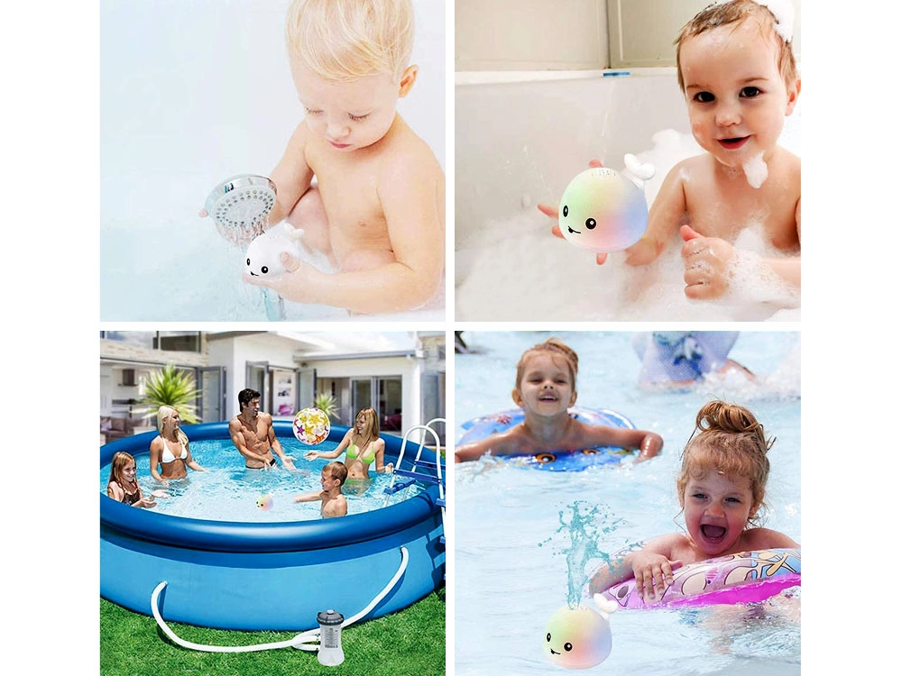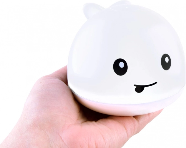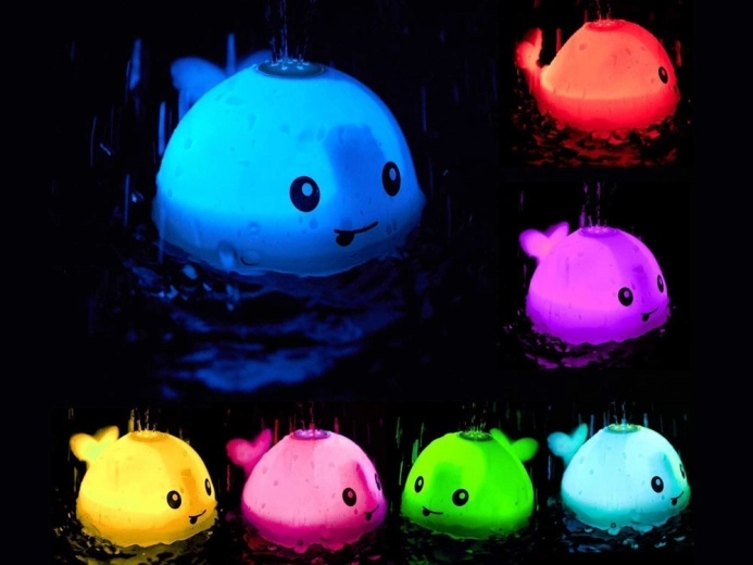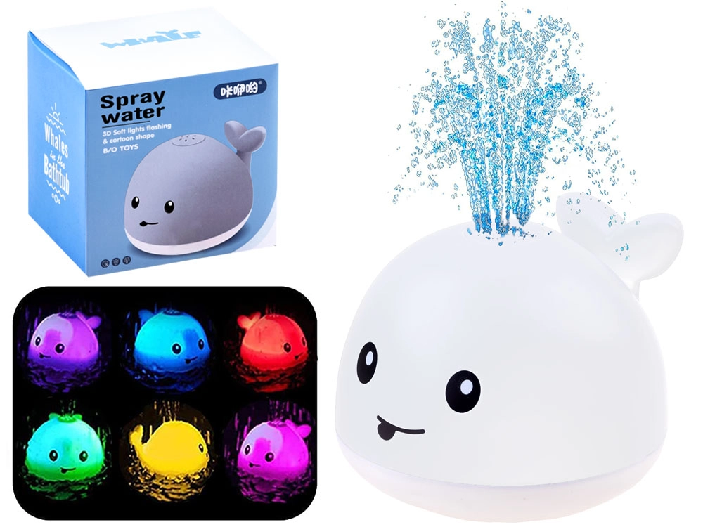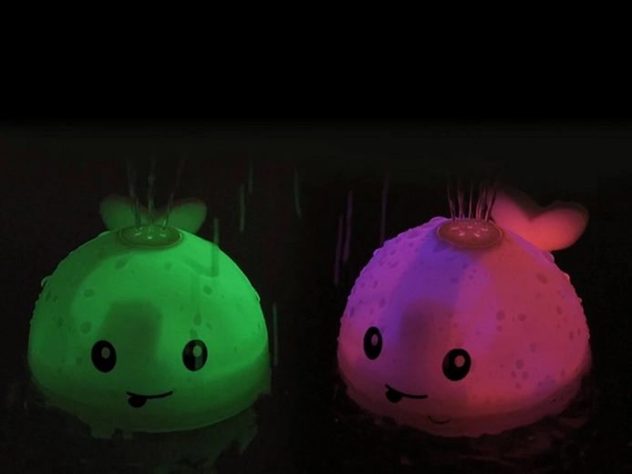Po zanurzeniu w wodzie wielorybek sam się uruchamia i tworzy delikatną wodną fontannę, która zajmie dzieci na długie minuty.