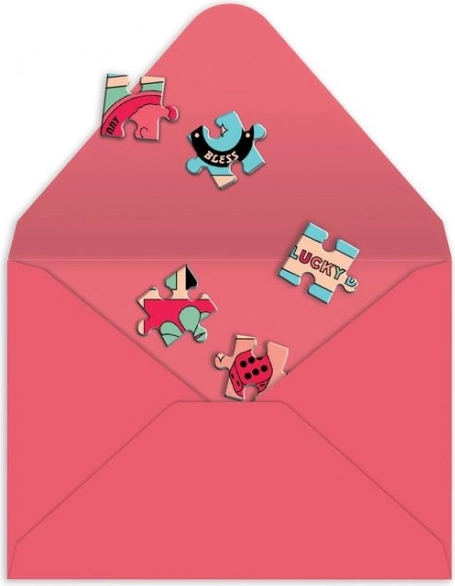 Pocztówkowe puzzle Dużo szczęścia to miły, pomysłowy i praktyczny prezent w jednym. Przychodzą w pełni ułożone, więc możesz od razu napisać swoją wiadomość na odwrocie. Następnie po prostu podziel je na elementy, włóż do dołączonej koperty i wyślij – obdarowany „ułoży” wiadomość podczas układania puzzli.