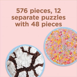 Świetny prezent na każdą okazję, zwłaszcza w czasie ferii i Świąt Bożego Narodzenia. Każde puzzle mają 48 elementów i są częścią zestawu, który łącznie zawiera 576 elementów. Zapewnia to godziny rozrywki przy układaniu.