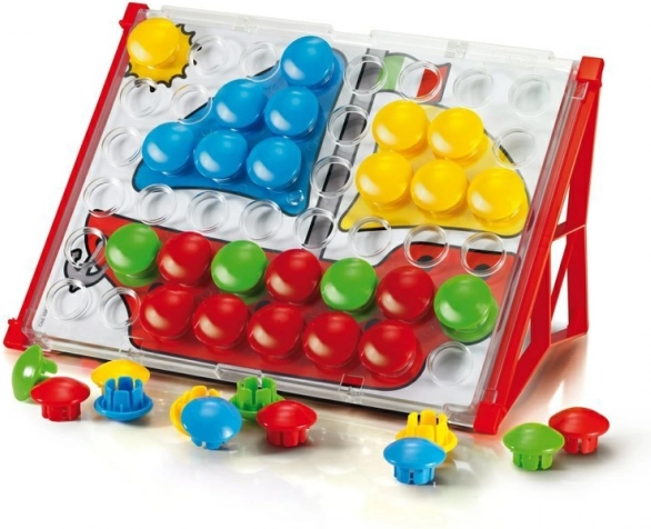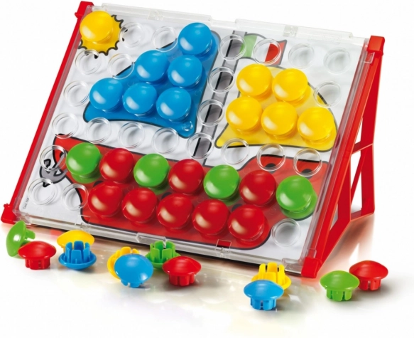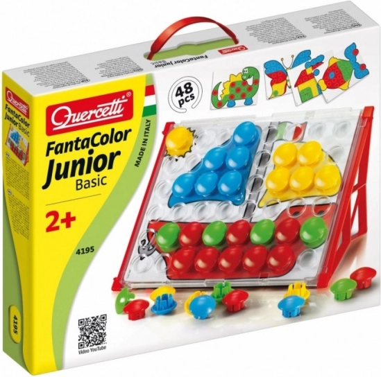 Fantacolor Junior Basic to idealna zabawka dydaktyczna dla przedszkolaków. Dzieci wkładają duże kolorowe guziki w otwory według wzorów lub własnej wyobraźni, trenując w zabawny sposób koordynację oko–ręka, rozróżnianie kolorów oraz myślenie logiczne. Dzięki solidnemu wykonaniu i bezpiecznym wymiarom mozaika jest odpowiednia już od 2. roku życia.