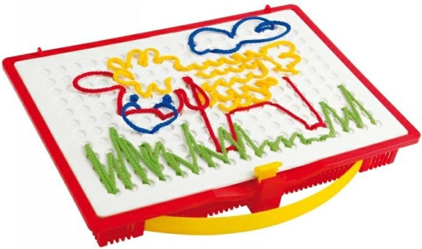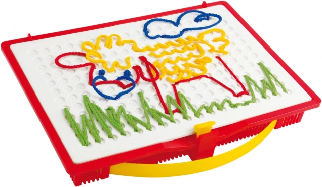 Odkryj magię kreatywnej zabawy z zestawem do haftowania Quercetti Filò, który wspiera dziecięcą wyobraźnię i zdolności manualne. Dzięki specjalnym igłom dzieci mogą tworzyć różne obrazy, wtykając kolorowe sznurki w otwory na planszy, co przynosi im radość i zabawę.