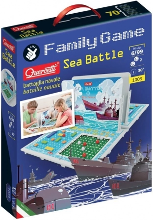 Zagraj w ulubioną grę w nowej odsłonie! Klasyczna gra planszowa dla 2 graczy, w której należy odkryć rozmieszczenie floty przeciwnika wyłącznie na podstawie współrzędnych, zyskała nowe oblicze. Gracze przedstawiają swoje floty za pomocą kolorowych kołeczków na perforowanych planszach, oddzielonych przegrodą, a w ten sam sposób zaznaczają pozycje statków przeciwnika, które ustalają, pytając o współrzędne. Gra dla graczy od 6 roku życia rozwija wyobraźnię, orientację przestrzenną oraz myślenie logiczne i strategiczne. Zawartość opakowania: 2 perforowane plansze do gry, 2 perforowane podkładki, 2 przegrody, 4 uchwyty przegród, 280 kołeczków dwóch kształtów w 6 kolorach, 1 zasobnik na kołeczki, instrukcja. Główne zalety: rodzinna gra strategiczna, rozwija wyobraźnię, orientację przestrzenną oraz myślenie logiczne, dla dzieci od 6 lat