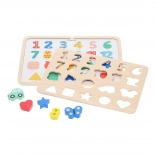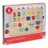 Układanka zawiera kolorowe elementy liczb od 1 do 12 oraz różne kształty, które pomogą dzieciom w ich rozpoznawaniu.