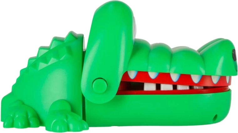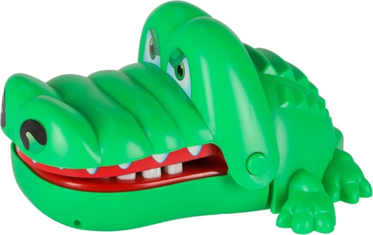 Możesz grać samodzielnie – próbuj kolejno naciskać wszystkie zęby – albo w grupie: każdy gracz naciska jeden ząb, a ten, kogo krokodyl „ugryzie”, odpada w tej rundzie. Gra jest resetowana i trwa dalej, aż zostanie zwycięzca. Kompaktowy rozmiar czyni ją idealnym pomysłem na prezent i zabawą w podróży.