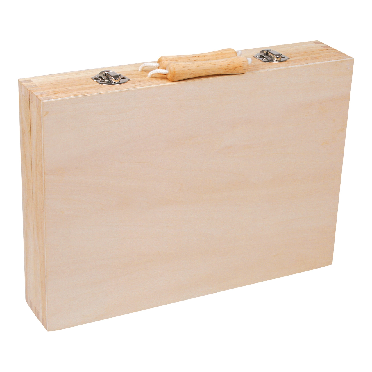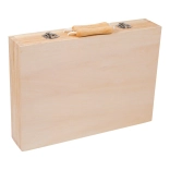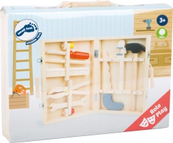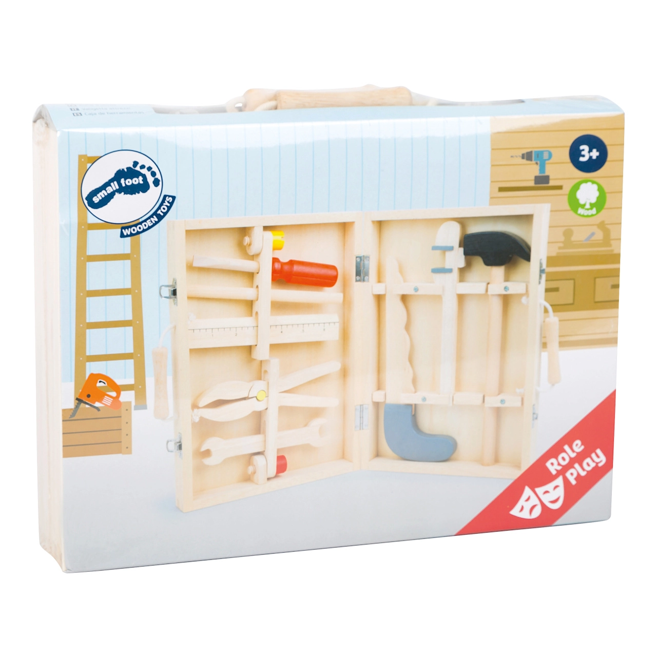Podaruj dzieciom autentyczne doświadczenie pracy z narzędziami dzięki walizce Small Foot Maik. Wszystko jest przejrzyście ułożone w solidnej drewnianej walizce z linianymi uchwytami. Młotek, piła i klucz nastawny są zabezpieczone przed przemieszczaniem, pozostałe elementy wkłada się do odchylanych uchwytów, które można łatwo wyjąć za pomocą dużych drewnianych śrub.