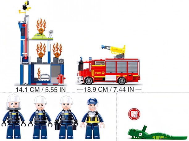 - Wóz strażacki z działkiem, mobilny robot, 3 figurki, instrukcja