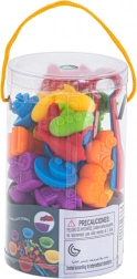 Ten barwny zestaw zamienia pierwsze kroki w matematyce w czystą radość. Dzieci sortują pojazdy według kolorów do misek, liczą, porównują ilości i wykonują proste zadania. W komplecie znajdują się także pęsety, które naturalnie rozwijają chwyt i koordynację oko–ręka.