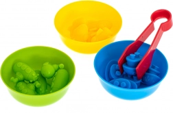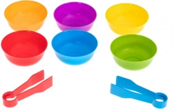Sześć misek w odpowiadających im kolorach oraz zestaw mini pojazdów motywują dzieci do sortowania i dodawania w formie zabawy.