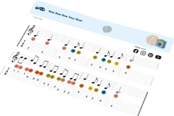 W opakowaniu znajdziesz proste nuty i dwie różne wielkości kostek, aby dzieci mogły zacząć grać od razu po rozpakowaniu.