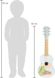 W zestawie znajdują się nuty oraz dwie kostki dla małych i większych dłoni, aby dzieci mogły zacząć grać natychmiast. Gitara wspiera naturalny rozwój słuchu akustycznego, koordynacji palców i poczucia rytmu.