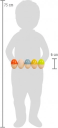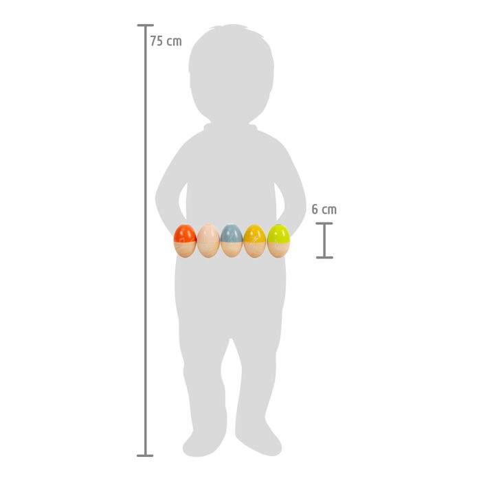 Te drewniane muzyczne jajka są idealne na pierwsze spotkanie ze światem rytmu i dźwięku. Dzięki różnej zawartości i konstrukcji każde jajko tworzy unikalny charakter grzechotu, co pobudza dziecięcą ciekawość, koncentrację oraz percepcję słuchową. Ergonomiczny kształt łatwo trzymają nawet najmniejsze rączki.