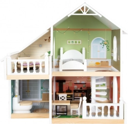 Ten nowoczesny domek dla lalek wprowadza otwartą koncepcję mieszkania, w której dzieci odkryją kuchnię z jadalnią, sypialnię, łazienkę oraz duży taras z miejscem do siedzenia. Dzięki otwartej stronie zabawa jest dostępna od frontu i komfortowa nawet dla kilku dzieci naraz. Jasna fasada i stonowane kolory świetnie wpasują się w każde wnętrze.