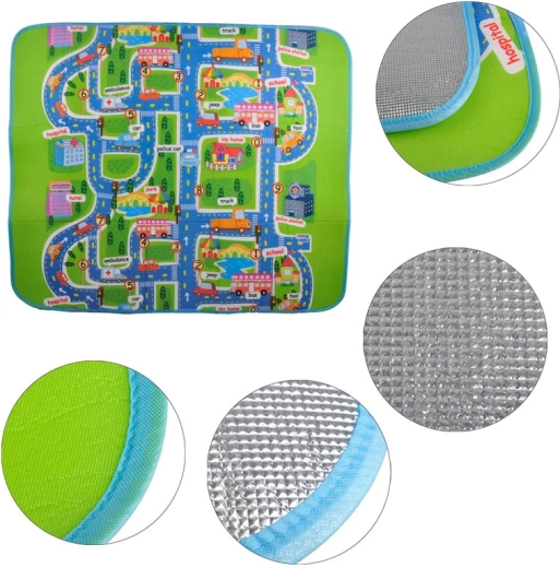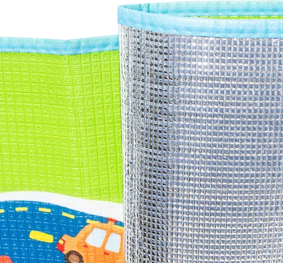 Mata izoluje przed zimnem i tłumi upadki. Twoje dziecko będzie mogło bezpiecznie bawić się na podłodze. Doskonały dodatek do pokoju dziecięcego, który urozmaici zabawę każdego dziecka. Mata ma od spodu warstwę folii termoizolacyjnej, więc możesz ją zabrać do ogrodu lub na plażę.