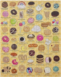 Świetny prezent dla każdego miłośnika pączków: puzzle z 1000 elementów przedstawiające 55 pysznych rodzajów, od Boston Cream po Vanilla Sprinkle. Stwórz dzieło sztuki do wnętrz.