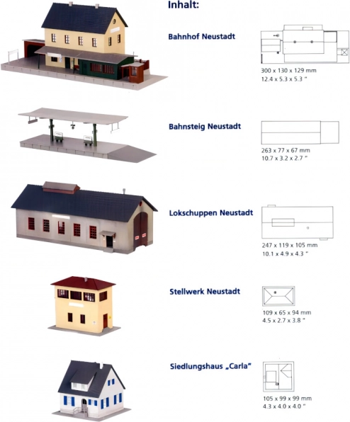 Kompletny zestaw zabudowy do makiety kolejowej pozwala szybko zbudować autentczną scenę stacji Neustadt i jej okolic. Dopracowana kolorystyka i precyzyjnie pasujące elementy z tworzywa gwarantują świetny wygląd oraz łatwy montaż. W zestawie znajduje się szczegółowa instrukcja, dzięki czemu możesz skupić się na projektowaniu krajobrazu i rozmieszczeniu poszczególnych elementów.
