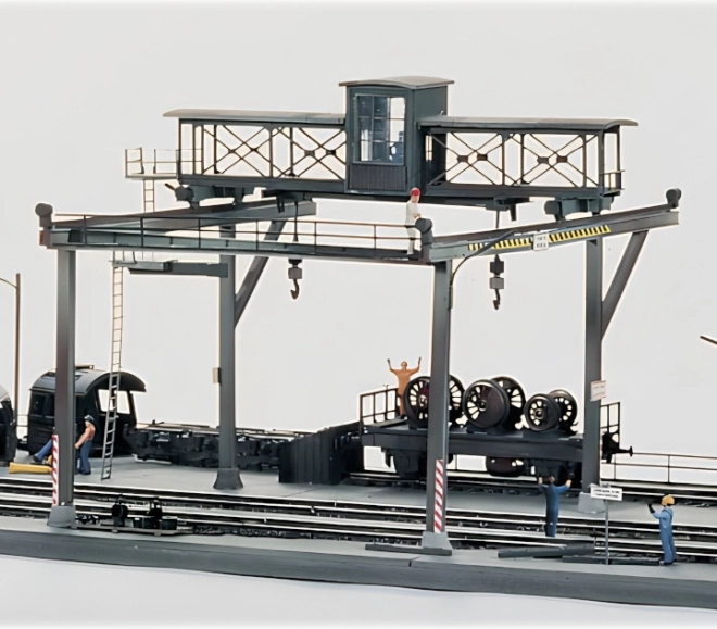 Mostowy żuraw PIKO wzbogaci Twoją makietę o wyrazisty element przemysłowy. Dzięki złożonej konstrukcji z licznymi drobnymi detalami sprawdzi się u wymagających modelarzy, którzy docenią wierną kolorystykę z patynowaniem oraz dużą platformę do aranżacji otoczenia. Świetnie pasuje do scen złomowiska lokomotyw, przeładowni czy innych stref przemysłowych.