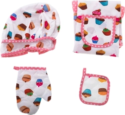 Oprócz ubrań, zawiera również drewniane przybory, w tym wałek, łyżkę, kilka foremek do wycinania ciasta i trzepaczkę. Wszystkie akcesoria wykonane z trwałych materiałów, idealne do godzin udawanego gotowania i pieczenia.