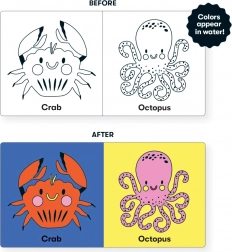 Odkryj urok wyjątkowych zabawek do kąpieli. Na pozór niepozorna obrazkowa książeczka po zanurzeniu uroczo ożywa różnobarwnymi kolorami. Łatwo przyciąga uwagę dzieci i bawi je podczas mycia, jednocześnie pomagając rozwijać ich umiejętności poznawcze. Proporcje zabawki są specjalnie dostosowane do drobnych i jeszcze niezdarnych dziecięcych rączek. Główne cechy: 6 stron z ilustracjami, aktywacja kolorów po zanurzeniu w wodzie, projekt graficzny Marijke Buurlage