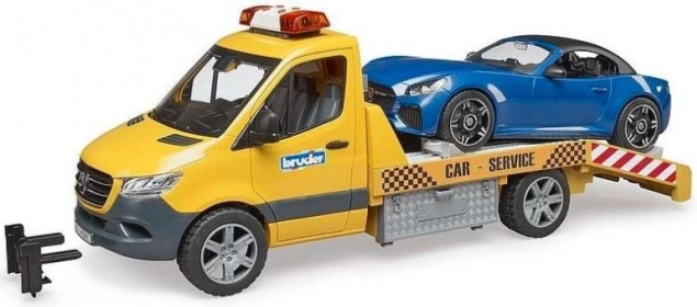 Laweta BRUDER wzorowana na MB Sprinter zachwyca detalami i bogatą funkcjonalnością. Dzieci ucieszy belka świetlna z dźwiękiem, realistyczna rampa z wysuwanymi najazdami i klinami oraz otwierane drzwi i boczne schowki. W komplecie jest sportowy kabriolet z odpinanym dachem i wymiennymi kołami.