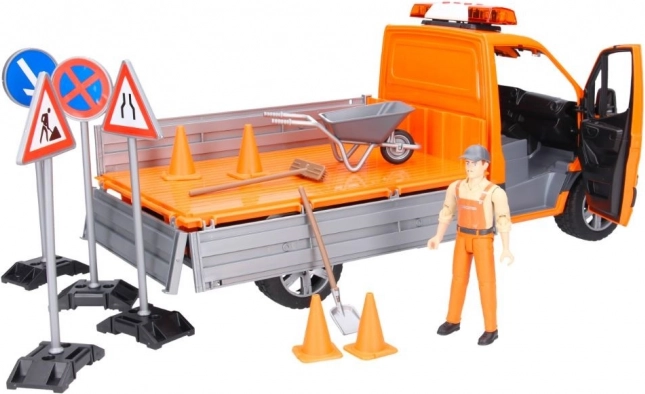 Dla jeszcze większego realizmu pojazd wyposażono w sygnalizator z efektami świetlnymi i dźwiękowymi (baterie w zestawie). W opakowaniu znajduje się figurka drogowca z ruchomymi kończynami, znaki drogowe, pachołki, najazdy i narzędzia. Solidne wykonanie z plastiku ABS wytrzyma intensywną zabawę w domu i na zewnątrz.