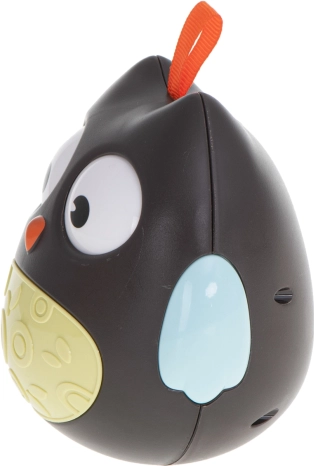 Stabilna dolna część sprawia, że sówka po każdym popchnięciu wraca na swoje miejsce. Dzieciom sprawia radość ciągłe odkrywanie związku przyczyny i skutku.