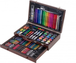 Ten wspaniały zestaw artystyczny jest idealny dla wszystkich, którzy chcą eksperymentować z różnymi technikami artystycznymi. Przychodzi w wygodnej drewnianej walizce, gdzie znajdziesz wszystkie potrzebne narzędzia starannie uporządkowane w przejrzystych przegródkach.