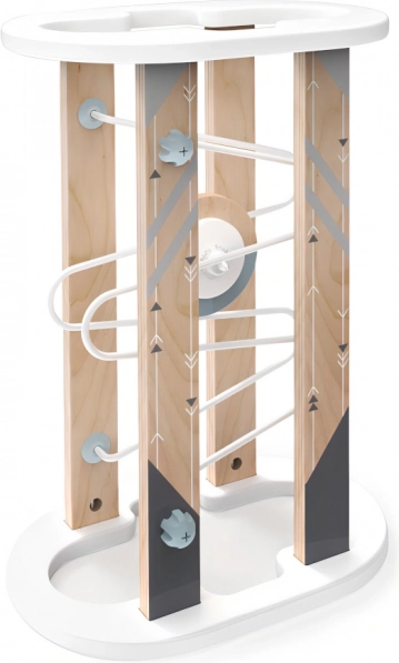 Obracaj trasę jak klepsydrę i doświadczaj niekończącej się jazdy! Pozwól dzieciom odkrywać fascynujące działanie magnetyzmu, które zapobiega wypadaniu niesfornego dysku! Konstrukcja zabawki wykorzystuje metalowe i plastikowe elementy łączące, dzięki którym w razie potrzeby można trasę łatwo złożyć, rozłożyć i schować. Dzięki solidnym elementom bazowym z wytrzymałej sklejki zabawka jest mocna, stabilna i trwała. Swoimi skandynawskimi i naturalnymi odcieniami stylowo uzupełni pokój dziecięcy. Dostarczana ze szczegółową instrukcją montażu. Główne zalety: trasa z dyskiem, łatwy montaż i demontaż, solidne i trwałe drewniane wykonanie