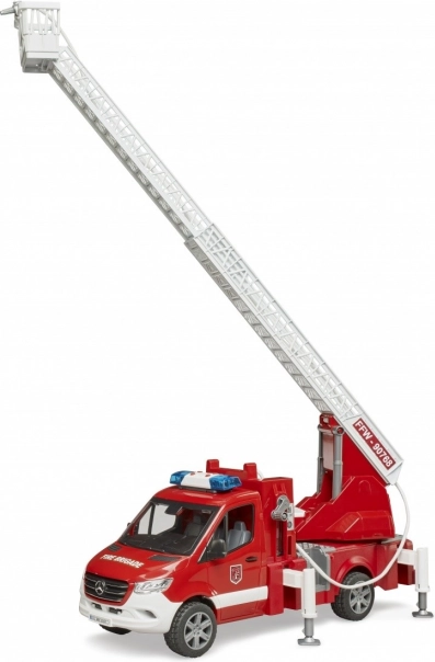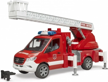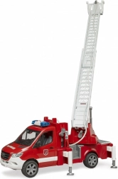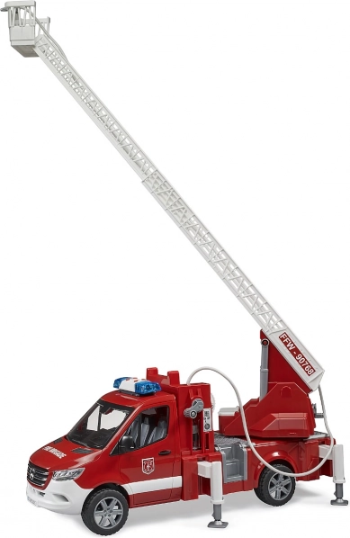 Drabina jest wysuwana i pozwala na obracanie, podczas gdy nogi stabilizujące zapewniają bezpieczeństwo podczas zabawy. Pojazd ma otwierany schowek, który może służyć do przechowywania dodatkowego sprzętu strażackiego. Kabina jest kompatybilna z figurkami z kolekcji BRUDER BWORLD.
